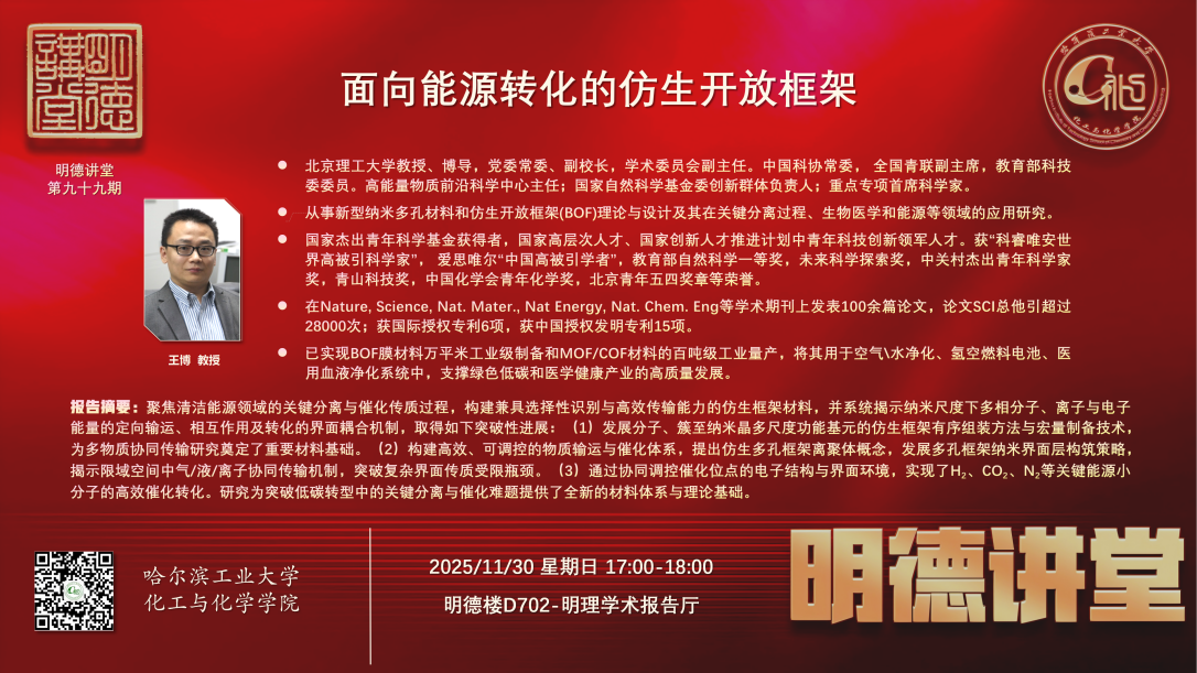 • 【明德講堂】王博——“面向能源轉化的仿生開放框架”